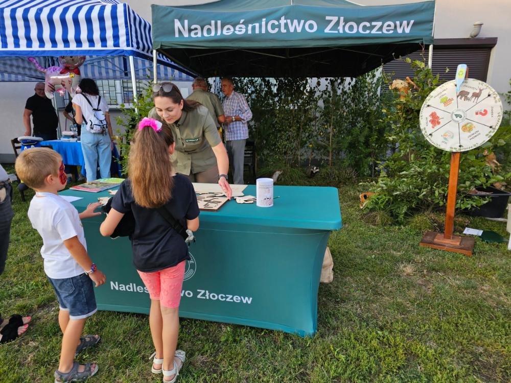 Uczestnicy festynu odwiedzali również chętnie ekspozycje Nadleśnictwa Złoczew. Nasz namiot gościł przede wszystkim rodziców ze swoimi pociechami. Pozwoliliśmy im przenieść się na chwilę na łono natury i poznać z bliska mieszkańców lasu. Każdy mógł zobaczyć a nawet dotknąć lisa lub zająca. Najmłodsi dowiedzieli się czym różni się kuna leśna od domowej oraz gdzie mieszka borsuk. Goście mogli poznać tajemnice leśnych drzew oraz co robią leśnicy aby wszyscy mogli korzystać z leśnych darów.