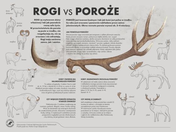 Posłuchaj Zdobka jak opowiada o szukaniu zrzutów w jednym z odcinków "Obliczy lasów" oraz sprawdź na naszej infografice czy wiesz czym różnią się rogi od poroża: